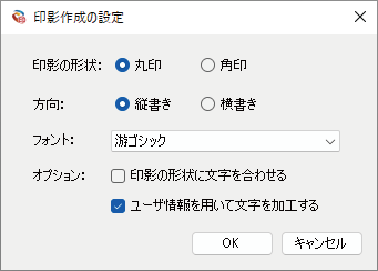 | テキスト | 指定された任意のテキストをもとに印影を作成できます。 |