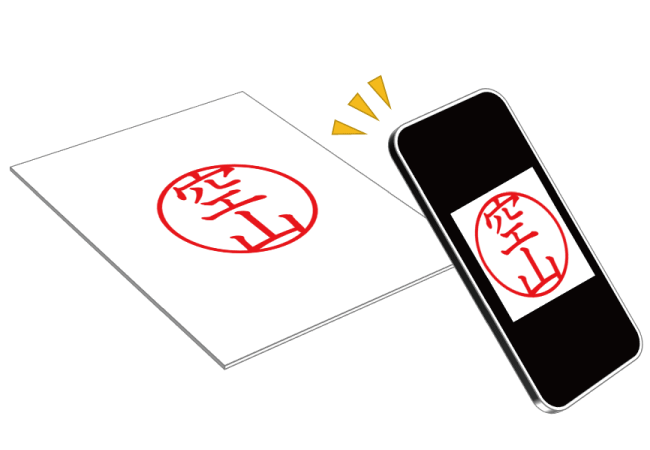 紙上の印影をスマートフォン等で撮影して印影用の画像ファイルを作成する。